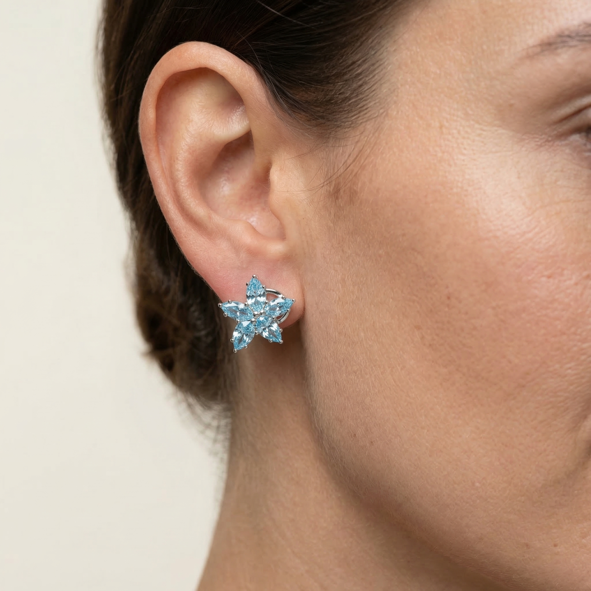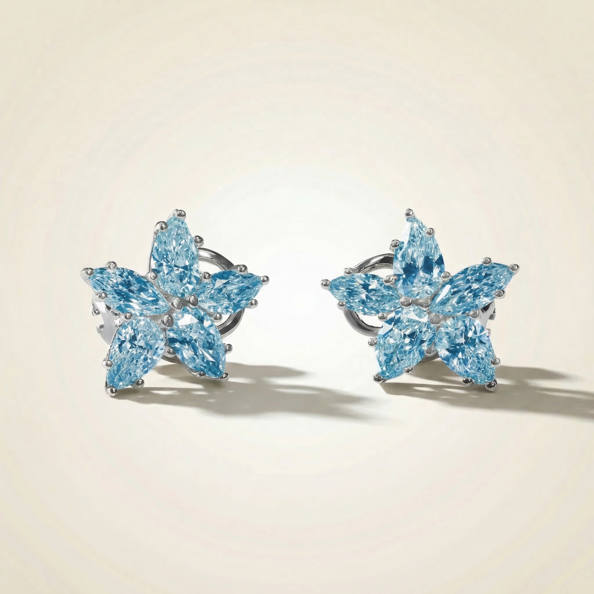 A delicate composition inspired by natural forms, the Blue Flowers Earrings — Aesthetic capture the softness and elegance of a floral silhouette through carefully arranged gemstones. The design brings together pear and marquise shapes to create a balanced, petal-like structure that feels both light and refined.
