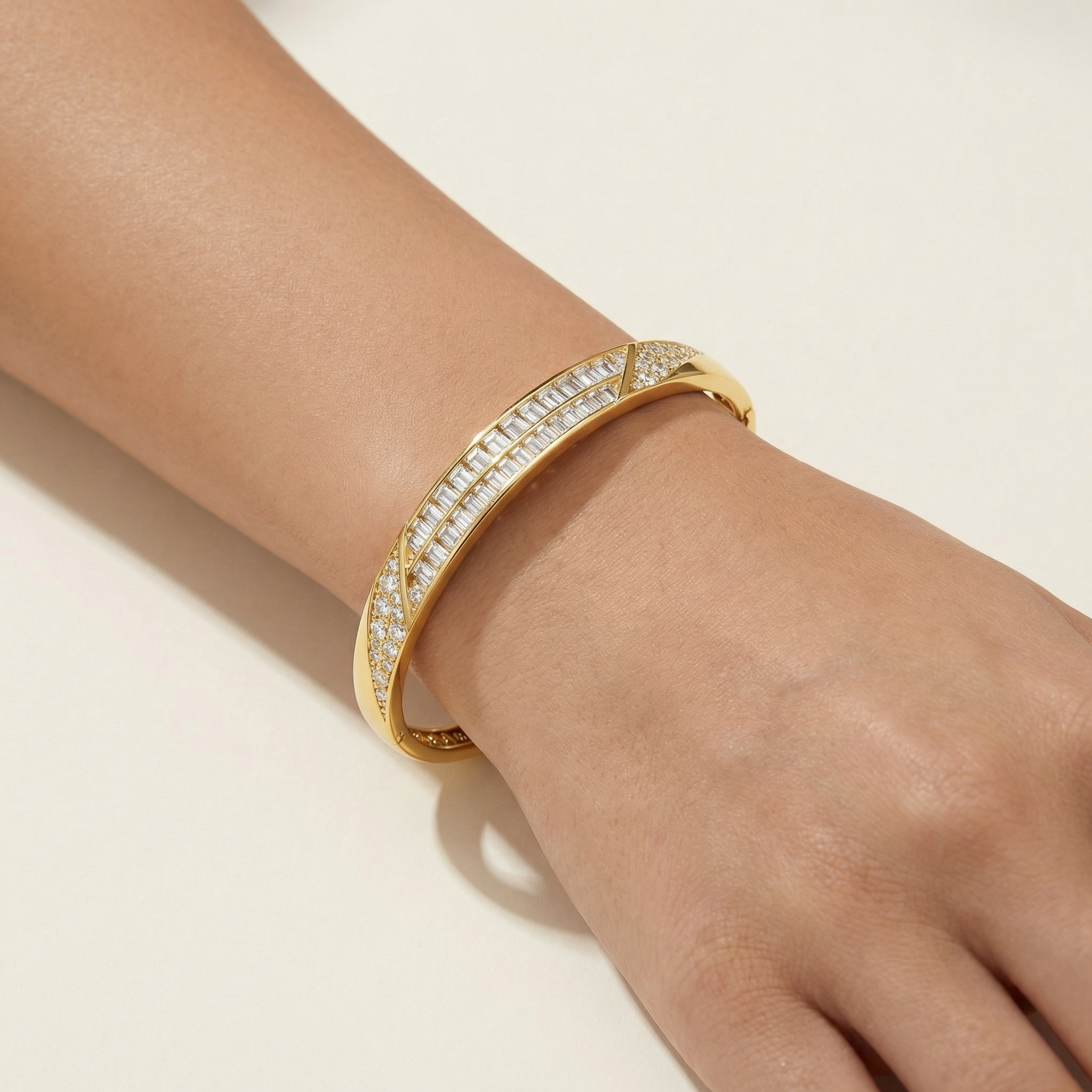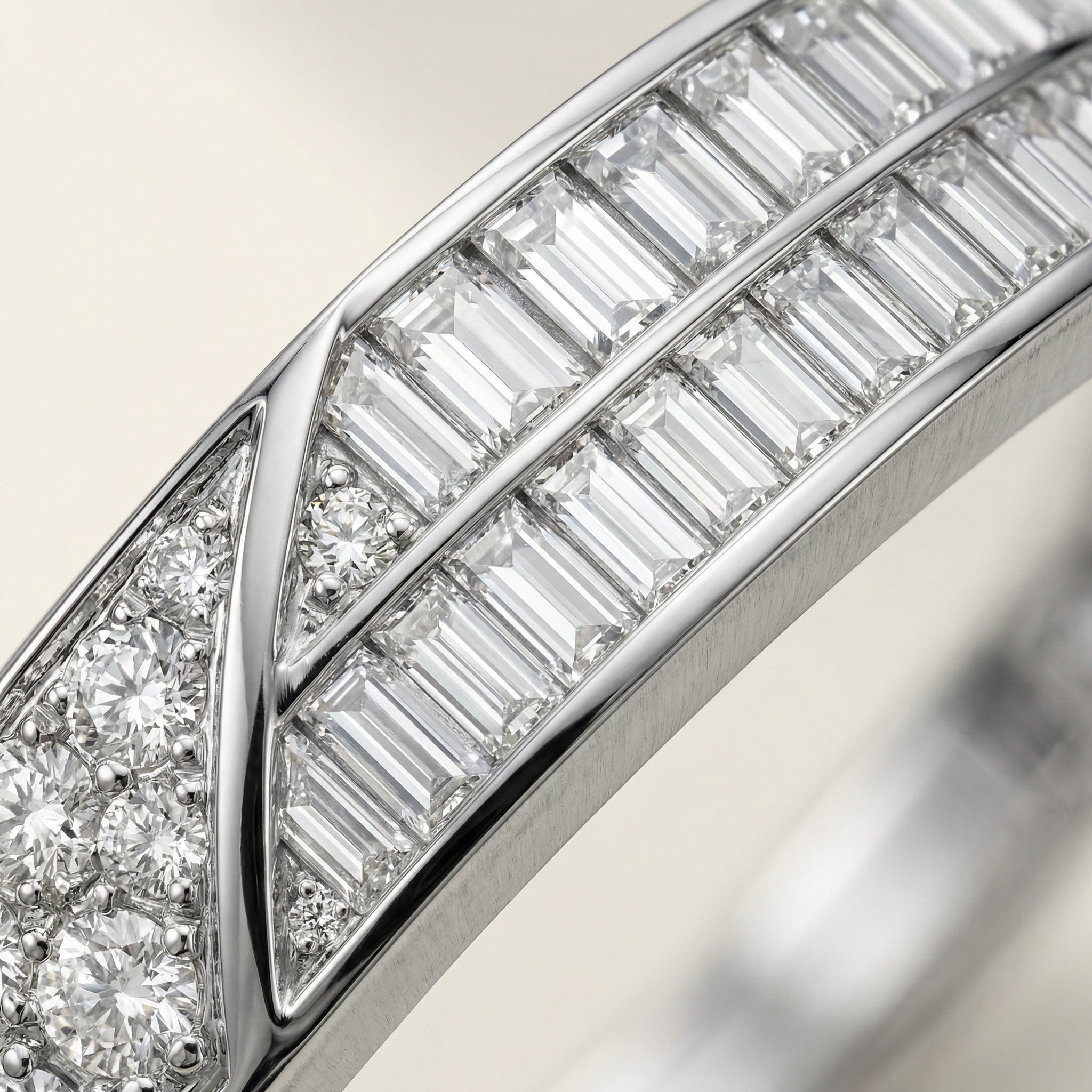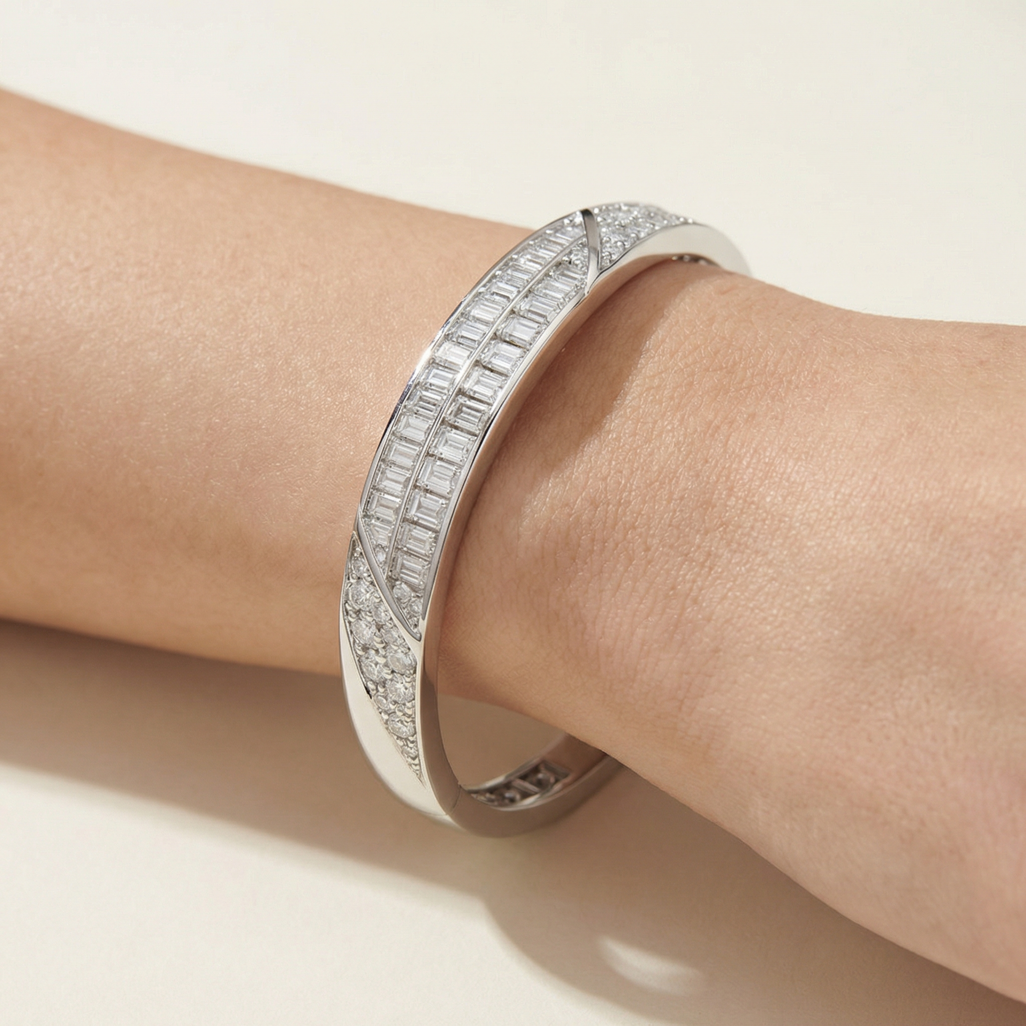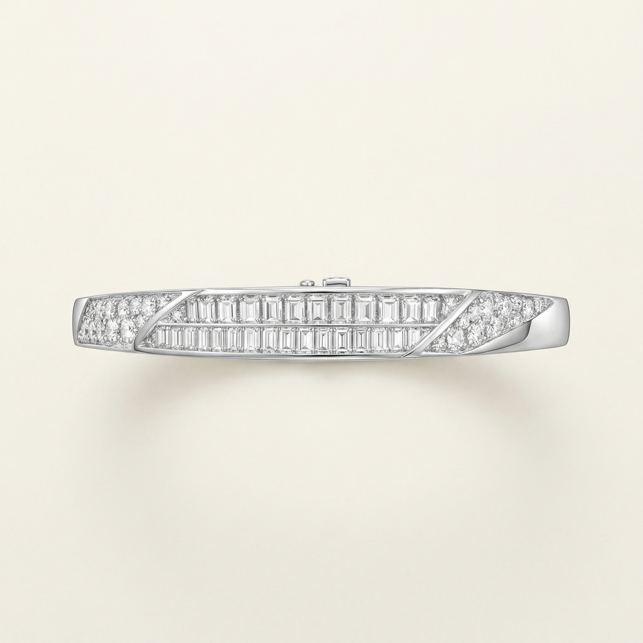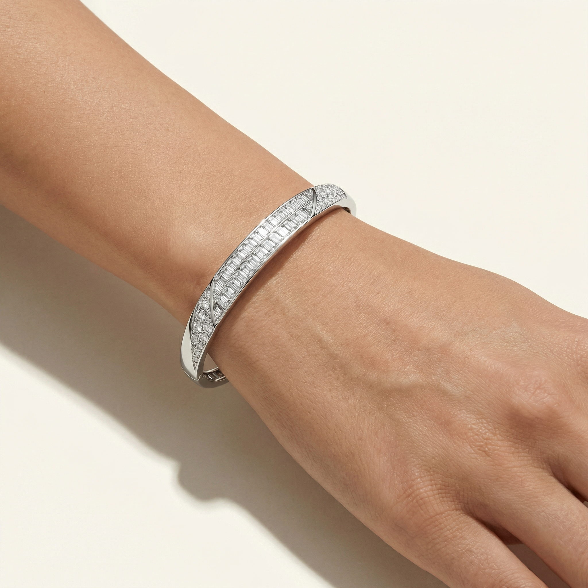 A structured and confident interpretation of timeless form, the Bracelet Hard Classic — Aesthetic is defined by clarity, geometry, and refined contrast. The design combines round brilliant lab-grown diamonds with emerald-cut stones, creating a disciplined interplay between fluid brilliance and architectural precision.