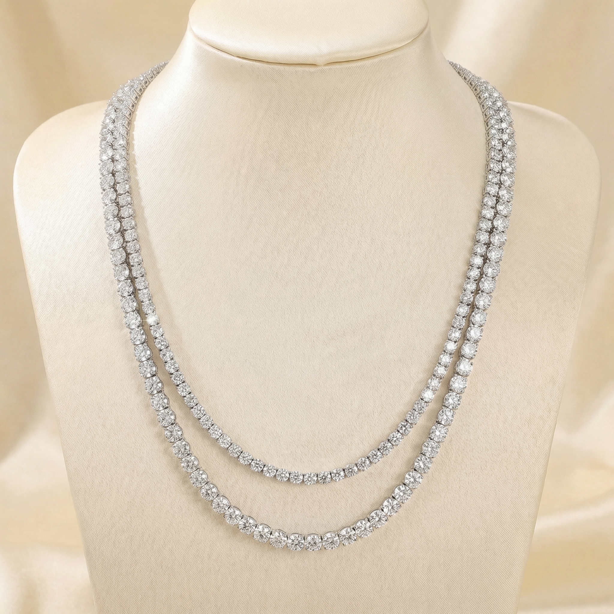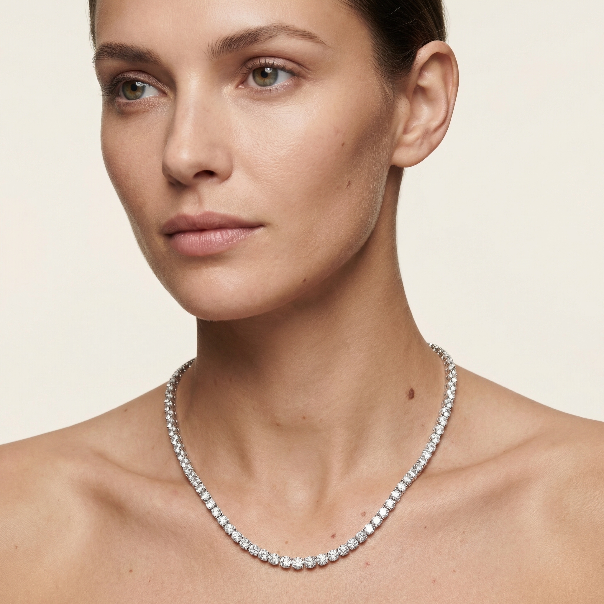 A refined expression of continuous brilliance, the Necklace Tennis Classic — Invest Liquid is defined by a seamless line of natural diamonds, creating a balanced and luminous silhouette around the neckline.