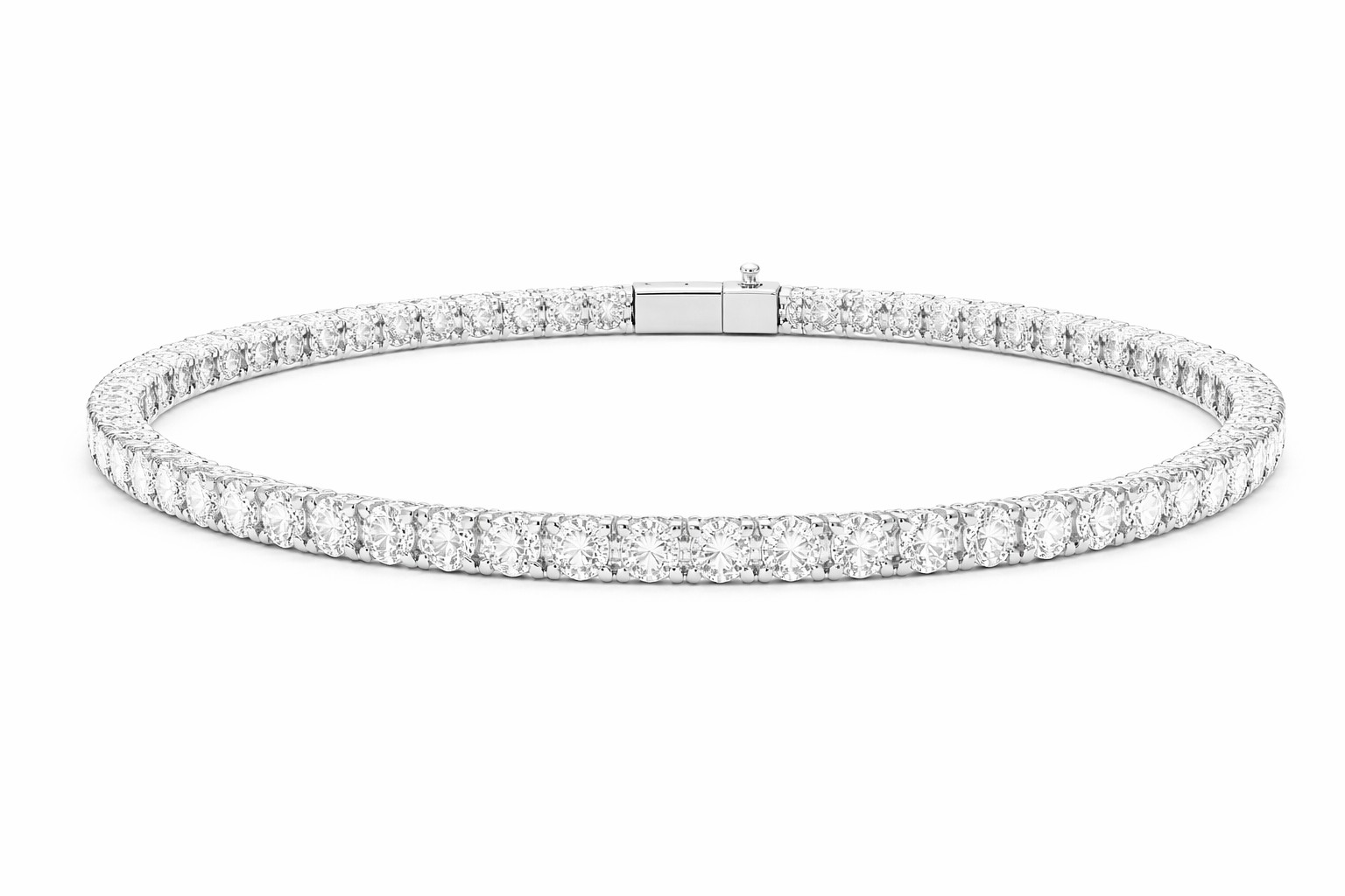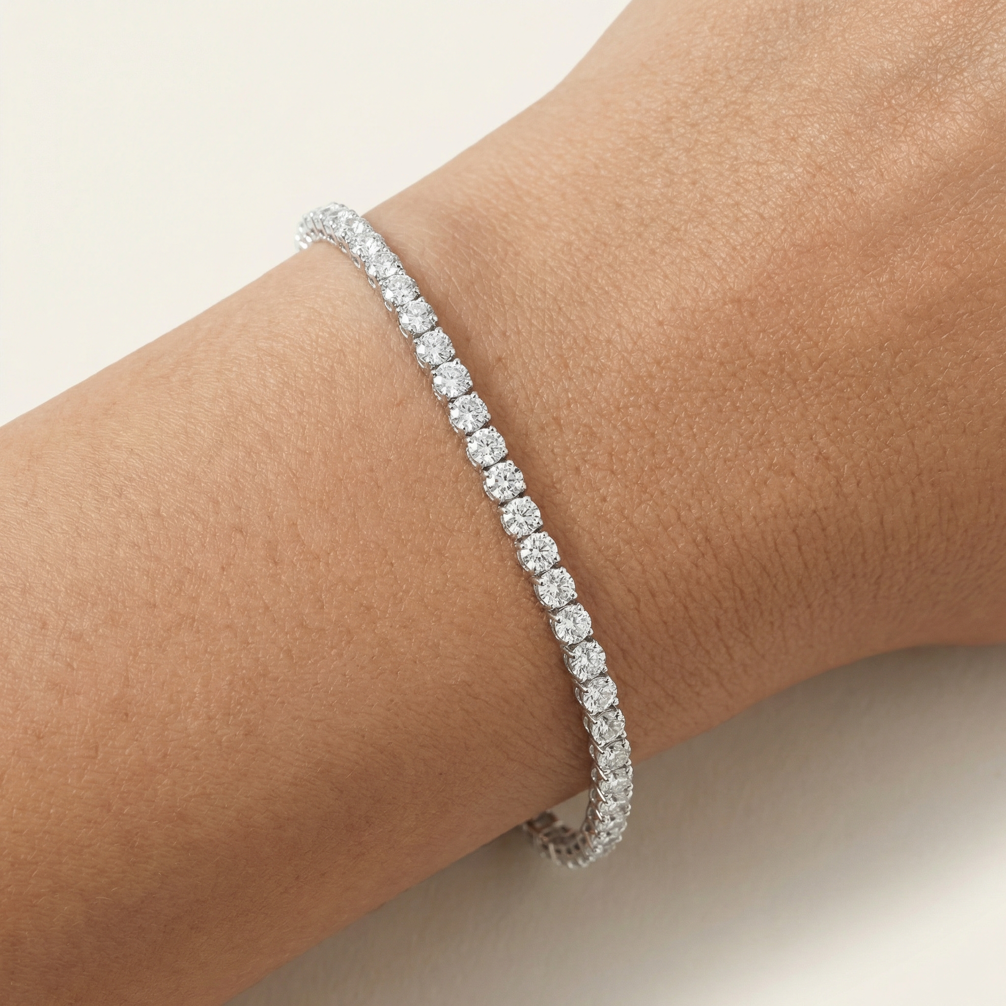 Crafted exclusively in 18K white gold, the setting enhances clarity and brilliance while preserving a clean, uninterrupted silhouette — the defining characteristic of a true tennis bracelet.